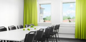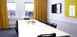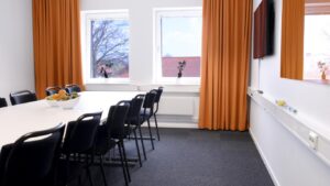 Vi har 3 olika grupprum med styrelsesittning för max 12 pers / mötesrum. Area: 20 m2.